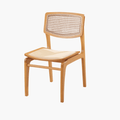 A Cadeira Pérola carrega em seu design a delicadeza das curvas bem desenhadas e a poesia do feito à mão. Seu encosto em rattan indiano natural, combinado à estrutura sólida em madeira maciça de reflorestamento, resgata a nostalgia do trançado artesanal, despertando memórias afetivas e um senso de acolhimento imediato.