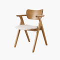 O encosto em madeira laminada, suavemente curvado, proporciona apoio ergonômico com leveza visual. Já o assento estofado oferece conforto imediato, ideal para quem busca funcionalidade sem abrir mão do estilo.